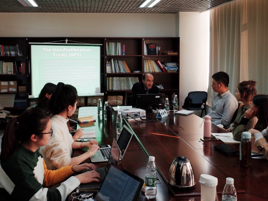 2018年10月18日,我院召开主题为“全面禁止核武器”的研讨会。应我院吴晓丹副教授邀请,意大利米兰国立大学国际法教授马克·派德拉兹(Marco Pedrazzi)前来访问,并作为本次研讨会的主讲人。研讨会由吴晓丹副教授主持,我院时业伟博士出席会议,法学院本科生、研究生和留学生参加。