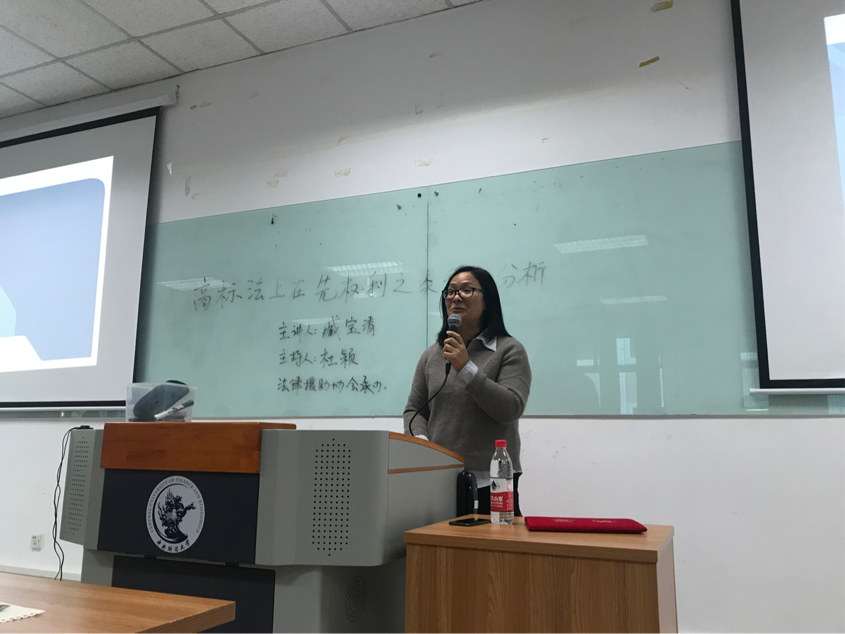 其次,臧宝清副秘书长通过分析具体案例,主要探讨了在先权利的类型化分析在法律实务中的影响。基于在先权利的多样性,她分别介绍了字号权益、著作权、外观设计权、姓名权、肖像权对于在先权利保护上的差异,提出了一系列热点争议问题,如确权实务中姓名权保护问题上的矛盾和冲突,作品名称、角色名称商品化权问题,字号权能否跨类保护等。随后与同学们探讨了经典的“乔丹案”和近期热议的“斗罗大陆”商标无效宣告行政诉讼案等热点案例。