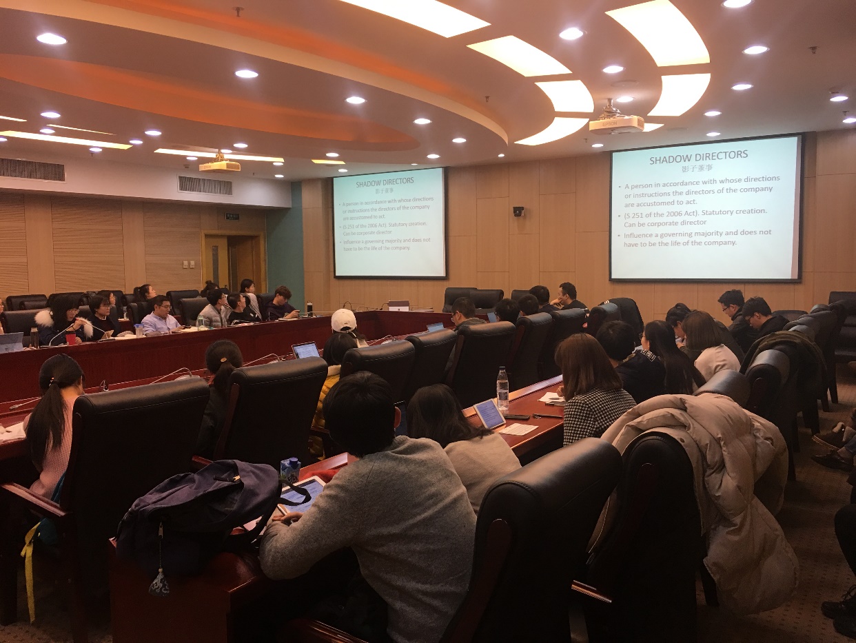 许顺光律师用英语做了精彩的主题报告。他首先大致介绍了董事的类型,其次详细讲解了普通法和成文法上的董事义务及其差异,继而结合中国法的规定分析了规则存在的问题及提出了若干改进的建议。