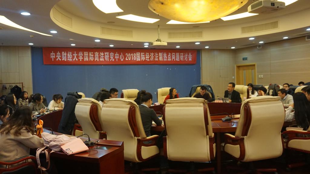 2018年11月30日下午,中央财经大学国际商法研究中心“2018国际经济法制研究领域热点问题”研讨会暨新时代国际经济法制重大问题系列讲座,在学院南路校区学术会堂606举行。中南财经政法大学《法商研究》何艳副编审受邀主讲,中国政法大学寇丽教授、中国社科院国际法研究所廖凡研究员受邀与谈。我院肖芳副教授、吴晓丹副教授、院长助理沈健博士、历咏博士、时业伟博士、张金平博士出席研讨,2017级和2018级部分研究生参加了本次活动。研讨会由我院副院长、国际商法研究中心主任王克玉教授主持。