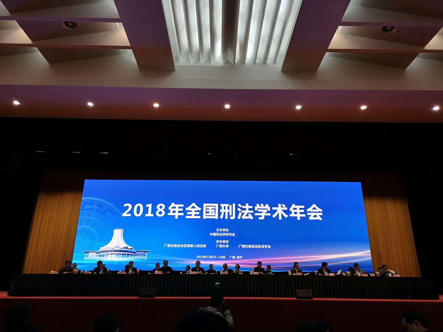 2018年12月15至17日,2018年全国刑法学研究会学术年会在广西壮族自治区南宁市成功举行。本次年会由中国刑法学研究会主办,广西壮族自治区高级法院、广西大学、广西法学会共同承办。来自全国人大常委会、最高人民法院、中国社科院、北京师范大学、武汉大学、中国政法大学、吉林大学以及华为、微软(中国)等机关、教学科研机构和企业的专家学者近400多人参加了会议。