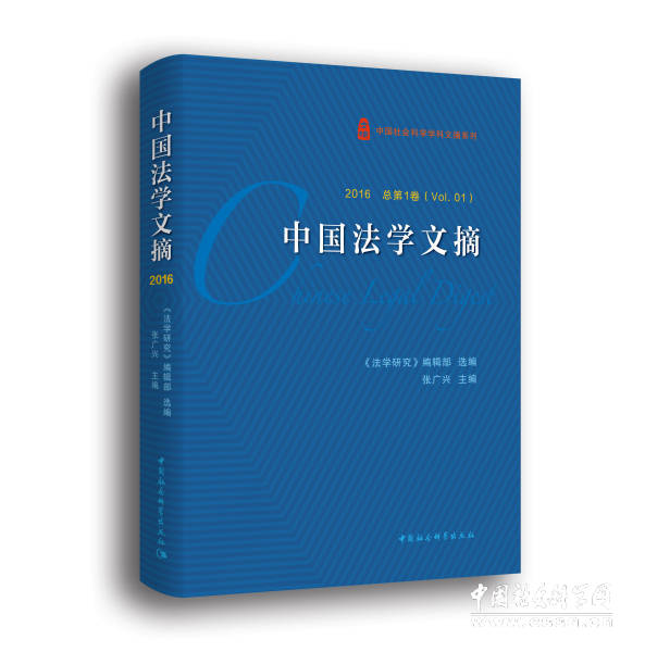 《中国法学文摘》由中国社会科学院法学研究所《法学研究》编辑部选编,张广兴主编,由中国社会科学出版社出版发行。2016卷所摘论文的来源期刊,主要为“中文社会科学引文索引”所收录的21种法学类学术期刊和1种综合性社会科学期刊。该卷设“本卷推荐”“精要摘编”和“论文提要”,摘选了10个二级学科的近200篇论文。