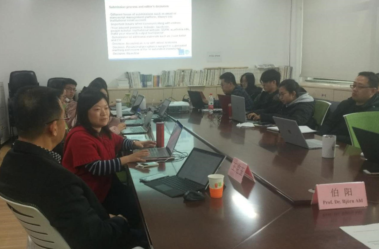 2019年1月2日下午,“英文法学论文的写作与发表”主题讲座在中央财经大学学院南路校区主教学楼808会议室举行。本次讲座主讲人为德国科隆大学中国法律文化专业教授、科隆大学人文学院东亚系系主任、欧洲中国法研究协会主席伯阳教授。中央财经大学法学院副院长王克玉教授主持讲座,法学院院长助理于文豪副教授、《财经法学》副主编朱晓峰副教授、法律实验与实践教学中心主任刘君博副教授、马静远博士参加讲座,法学院部分博士生、硕士生和本科生到场聆听。
