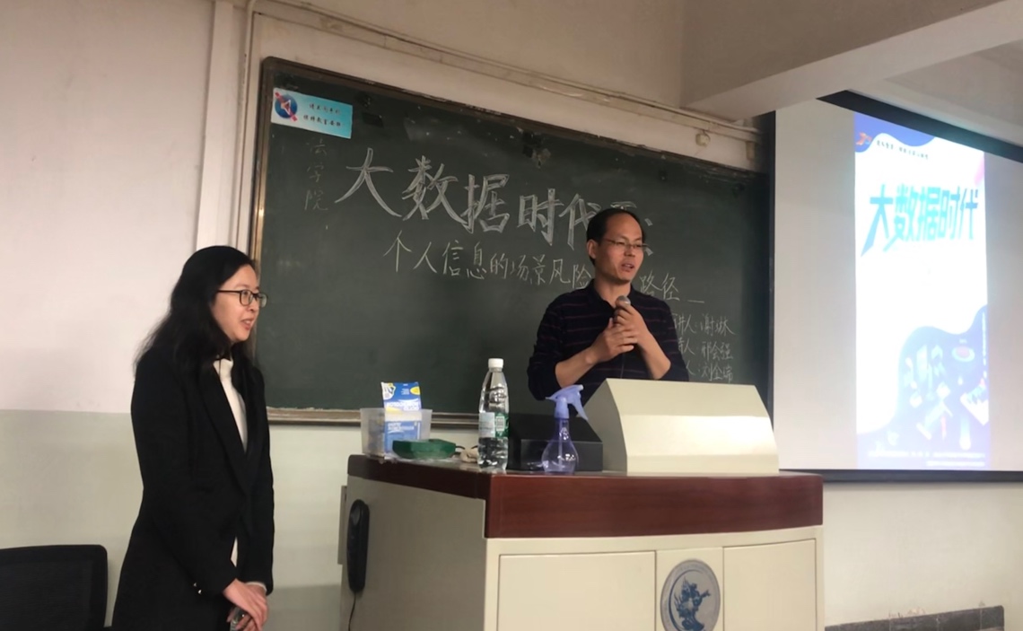 中央财经大学邢会强教授主持,在讲座开始,邢会强教授给在场的老师学生简述了个人信息保护的历史和现状,同时向大家介绍了到场嘉宾。