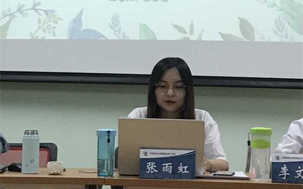 在发言环节,张雨虹同学就该议题向在座师生做了演讲。张雨虹同学就该议题分别从选题背景与研究的目的意义、参考文献综述、主要研究内容和拟解决的主要问题、研究方法与思路等四个方面进行了论述。在选题背景与研究的目的意义中,她紧扣热点,介绍了2018年范冰冰“阴阳合同”案,并强调税收是国家财政的主要来源,逃税将导致我国税款的流失;在介绍文献综述时,她围绕税收核定、自动报缴免罚等制度对我国大陆和台湾地区学者的文章进行了论述;在介绍主要研究内容和拟解决的主要问题时,她对影视行业中主要存在关联交易与滥用税收洼地、核定征收、偷税和逃税等涉税问题进行了分析。在报告的最后,她还梳理了研究的进路,并对文献法、案例分析法等研究方法在本议题中的应用做了介绍。