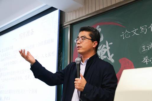 2019年12月23日晚,我院沈建峰教授在主教503教室针对第十九届“挑战杯”学生课外学术论文竞赛作主题为“商谈:学术论文写作的方式和方法”的论文写作指导讲座,从写作准备、论文选题、论文写作、论文修改、论文形式等五方面分析了学术论文写作的方式和方法。