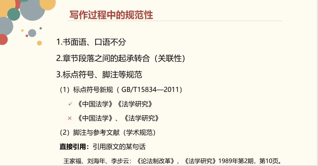 最后,简爱博士指出,论文写作过程中,标题要规范,写作过程也要规范。关于标题规范,需要做到:一是标题要规范书写;二是标题之间要体现逻辑性;三是标题之间不得有重复性;四是标题中不得出现虚词;五是标题应该遵守简明原则。关于写作过程中的规范性,需要注意以下细节:一是切忌书面语、口语不分;二是章节段落之间要起承转合;三是标点符号、脚注要规范。