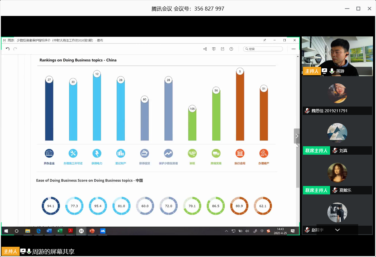 首先,周游副教授引入了世行营商环境评估体系,尤其是着重评介少数投资者保护这一指标,他具体分析了世行营商环境评估指标的内容及我国的排名变化,介绍了世行评估指标里保护少数投资者指标的方法论及问题,以此对投资者具体定义、指标之间的逻辑关系等问题予以进一步反思,最后在法系差异和治理差异的基础上,简析世行标准对于我国制度革新而言应当注意的问题。