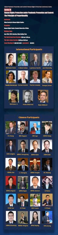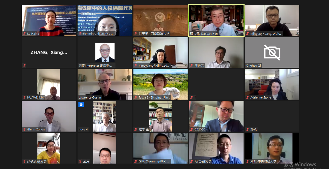 2020年6月20日,法学院刘权副教授应邀参加“比例原则在疫情防控中的人权保障作用”国际研讨会。来自中国、美国、英国、澳大利亚、德国、意大利、新加坡、尼泊尔等国近40名人权领域专家学者分享各国防疫举措,围绕如何在人权保障和防控措施之间寻求合理的平衡以及后疫情时代如何尊重和保障人权,共同推进人权治理等议题展开深入研讨,达成诸多共识。此次会议采取国内国外全部线上、英文中文同传切换的形式,并特设中国—北美和中国—欧亚两个分会场。
