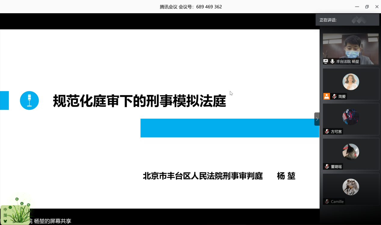 本次刑事法律诊所课程分为实务专家指导和模拟法庭考核两项进行。来自北京市丰台区人民法院的杨堃法官、法官助理陈嘉森及北京市人民检察院第一分院检察官助理张洋等多名一线实务专家助力我院实践课程建设。课程开设过程中,实务专家们或通过讲座讲授刑事审判实务中的前沿问题,或通过微信线上交流为同学们答疑解惑等多样形式,对学生进行课程指导。