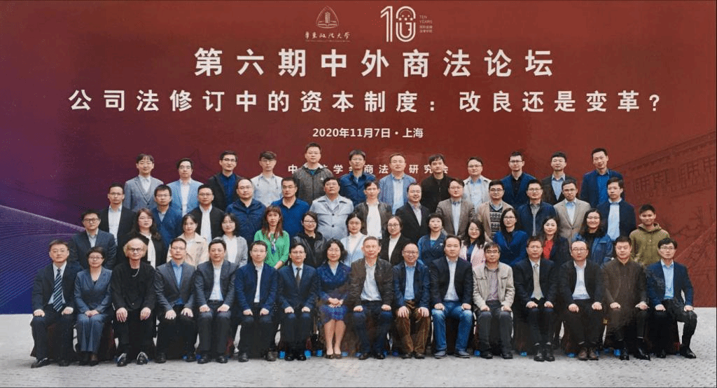 2020年11月7日,第六期中外商法论坛在上海顺利召开。本次论坛由中国法学会商法学研究会及华东政法大学国际金融法律学院联合主办,主题为“公司法修订中的资本制度:改良还是变革”。我院周游副教授应邀参加,并在议题四“资本制度前沿法律问题”环节作主题发言。来自北京大学、清华大学、中央财经大学、中国政法大学、西南政法大学、中南财经政法大学、华东政法大学、吉林大学、对外经贸大学、上海财经大学、兰州大学以及中国社科院、上海市人大常委会法工委、上海高院、上海高检、上海证交所、深圳证交所、北京大学出版社等高校、科研院所、政府机构、企事业单位共60余人参加论坛。