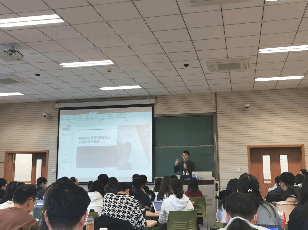 2020年11月12日下午4点,中央财经大学法学院杜晶副教授在学院南路校区主教楼306教室作“蚂蚁科技暂缓A股首发上市的证券法解读”讲座。本次讲座由法学院商法教研室副主任周游副教授主持,法学院董新义副教授、陈飞副教授、王湘淳博士参与与谈,法学院党委组织员邓玉老师也出席了本次活动。来自各年级的本科生及研究生100余人到场学习。本次讲座系商法学研究工作坊系列活动第5场,同时也是资产管理法治系列讲座第3场。