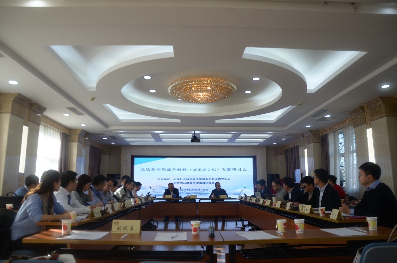 2020年11月22日,“最高人民法院关于《民法典》担保部分解释(征求意见稿)专题研讨会”在中国社会科学院法学研究所成功举行。本次研讨会由中国社会科学院法学研究所私法研究中心、北京市台港澳法律事务研究会联合主办。来自北京市第一中级人民法院、北京市第三中级人民法院、北京航空航天大学、中国人民大学、中国政法大学、中央财经大学、中国农业大学、重庆大学、首都经贸大学、外交学院、方达律师事务所、北京市台港澳法律事务研究会、中国社会科学院法学研究所等单位的专家、学者和实务工作者参加了本次研讨会。我院徐建刚博士应邀参会。