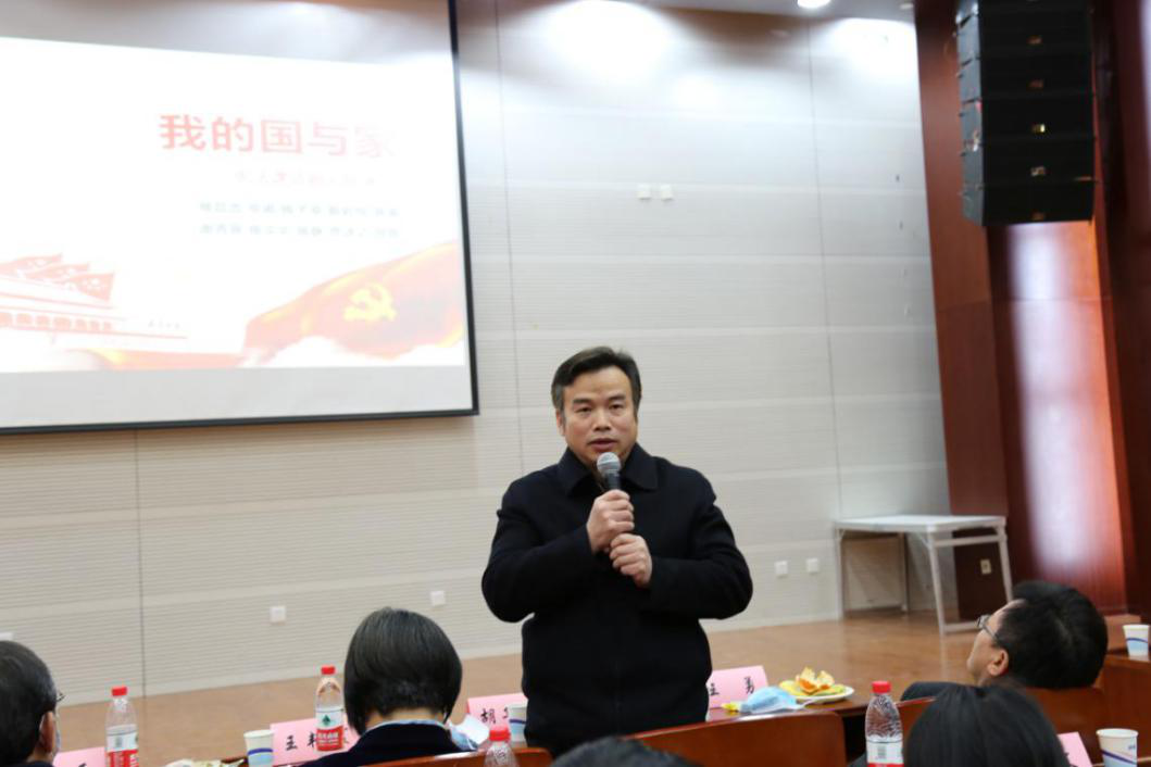 吴韬书记代表法学院致欢迎辞。他说,中央和教育部向高校提出了立德树人、四个回归的总要求。蒋劲松教授在坚持课堂教学上不遗余力地倾注心血,坚持立德树人,践行四个回归。他感谢各位嘉宾的莅临,支持宪法课程中设置剧目演出环节,并预祝演出圆满成功。
