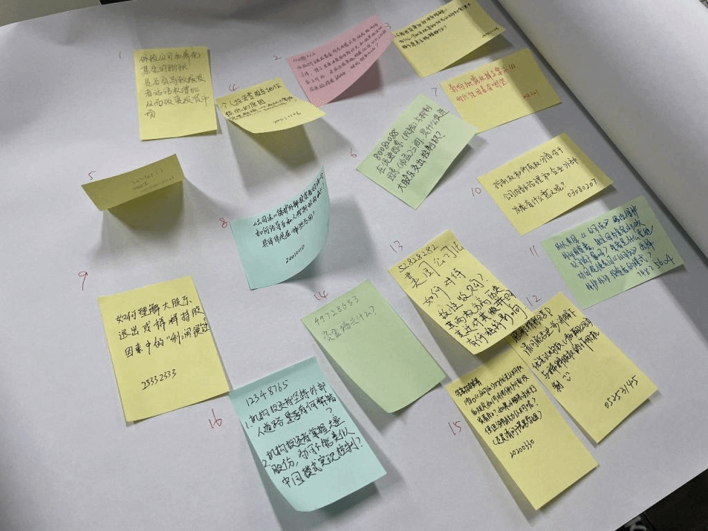 在场的同学在聆听完发言人的发言后深入思考,以便签形式对发言人的发言进行了提问与评析。