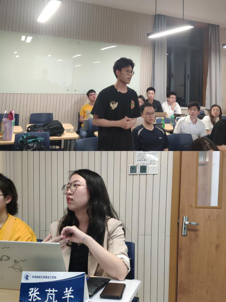 随后,评议团队对展示予以评价。2020级研究生文兴榕从形式与实质两方面对发言团队进行评议。在形式上,案情分析采用了可视化图表进行展示,增强了可读性,并且各个环节之间衔接自然,有趣味性;在实质上,文兴榕同学建议,对于同案不同判的案例研究可采用类案研究方法。对于完善路径层面建议与证券法等其他法律制度进行联动。2018级本科生张茹雪认为发言人王长豫表达清晰直接,同时也建议发言团队对选取案例的理由向听众进行说明。2019级本科生王子晴认为发言团队时间分配合理,发言结构清晰,同时也对“嘉悦案”与“夏仲文案”是否为同案发出了疑问。2019级本科生刘磊对“嘉悦案”与“夏仲文案”两案存在同案不同判发出了疑问,并建议发言人在发言前将两案详细案情提供给工作坊成员,以便大家对案情有更熟悉的了解。2019级本科生周志远着重对李昭霖同学介绍的三种常见交易模式进行了评议,并认为发言人将视角在规范与事实之间不断进行转换,可以感受到发言人在法律学科与金融学科中思维融汇贯通的努力。会计学院2020级本科生苏奕戈同学肯定了发言团队的展示,并提到自己是第一次了解股债融合,今后会继续加强学习。