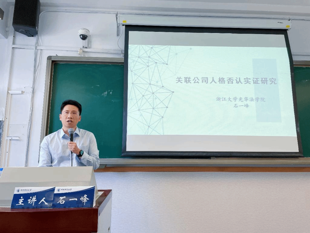 2021年5月17日下午,浙江大学光华法学院副教授、民商法研究所执行所长石一峰老师到访我院,在学院南路主教310教室举行了题为“关联公司人格否认实证研究”的学术讲座。讲座由我院企业合规与风险防控法律研究中心主任周游副教授主持。我院杜晶副教授、徐建刚博士、王湘淳博士参与本次讲座进行交流。本次讲座共有近50余名学子慕名前来学习。