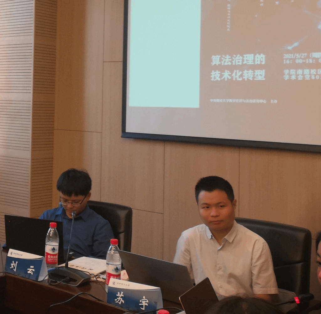 2021年5月27日下午,中财人工智能与网络法学术沙龙第10期在学院南路校区举行。中国人民公安大学法学院副教授、数据法学研究院院长苏宇应邀到访我院,在学术会堂603为我院师生作了主题为“算法治理的技术化转型”的学术沙龙报告。