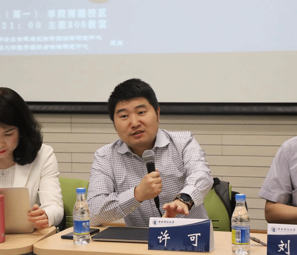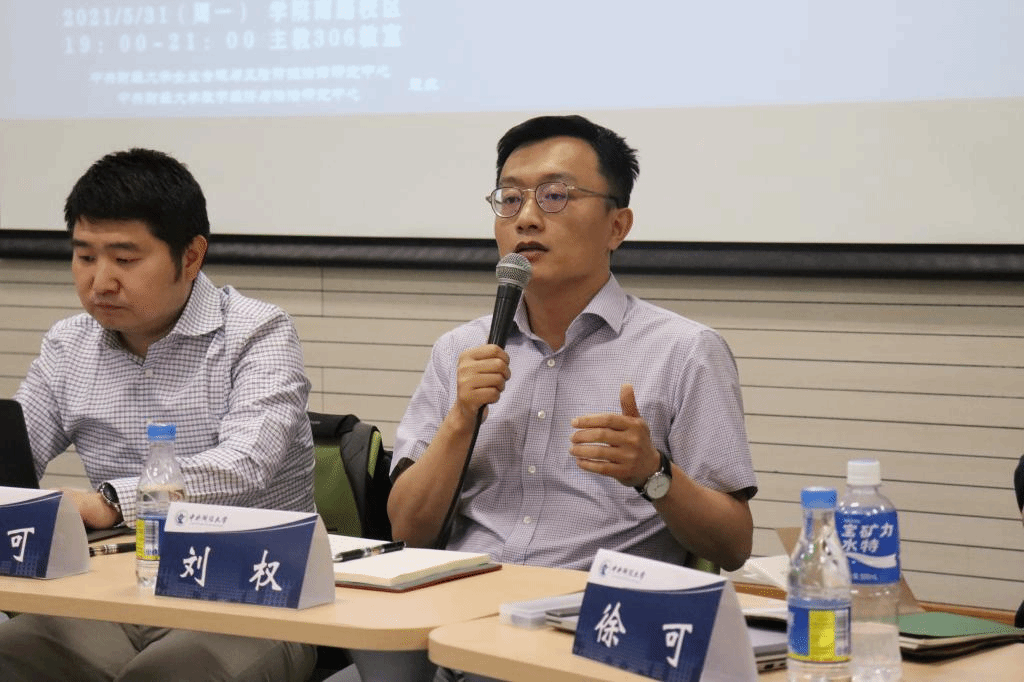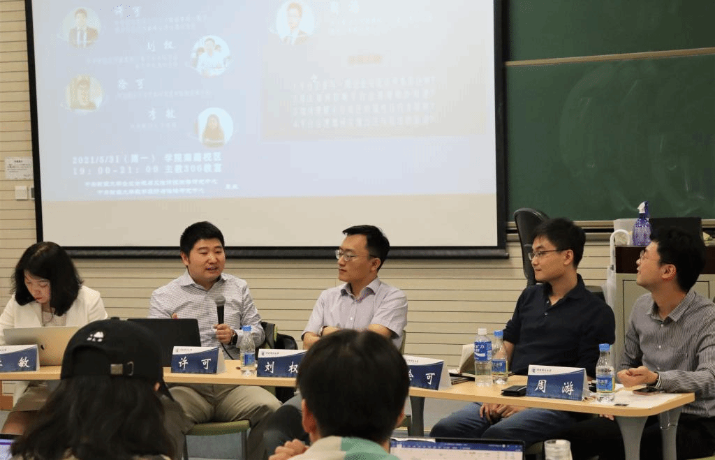5月31日,由中衍教育基金资助、中央财经大学企业合规与风险防控法律研究中心与数字经济与法治研究中心承办的“平台治理:公法与私法的交汇”企业法治系列沙龙活动在学院南路校区主教306教室举行。参与此活动的嘉宾包括:对外经济贸易大学法学院许可副教授、中央财经大学数字经济与法治研究中心执行主任刘权副教授、中国政法大学民商经济法学院师资博士后徐可老师、中国农业大学人文与发展学院刘建副教授、我院教师李敏和王湘淳博士,中央财经大学企业合规与风险防控法律研究中心主任周游副教授主持本次活动。本次活动共有120余名学生参加。