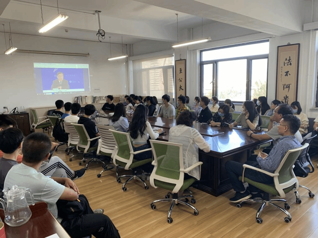 2021年9月17日,我院在主教808会议室组织法学院师生观看“学习贯彻习近平法治思想报告会”。我院尹飞院长、吴韬书记、徐颖副书记、李伟副院长、贾媛媛老师与2021级全体党员同学共同观看,深入学习习近平法治思想。