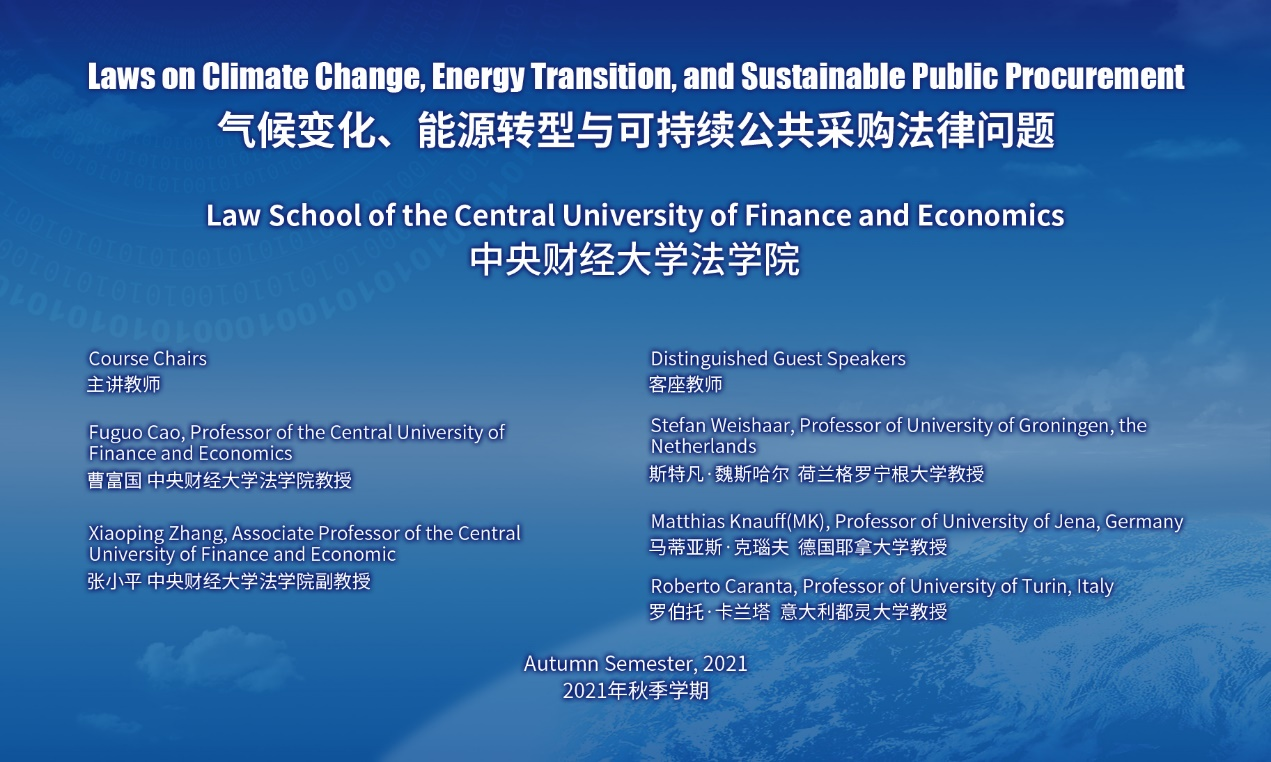 本课程由中央财经大学法学院曹富国教授、张小平副教授主讲,并邀请荷兰格罗宁根大学StefanWeishaar教授、德国耶拿大学MatthiasKnauff教授、意大利都灵大学RobertoCaranta教授担任客座讲师,汇集了上述领域的欧洲知名学者和前沿研究成果。