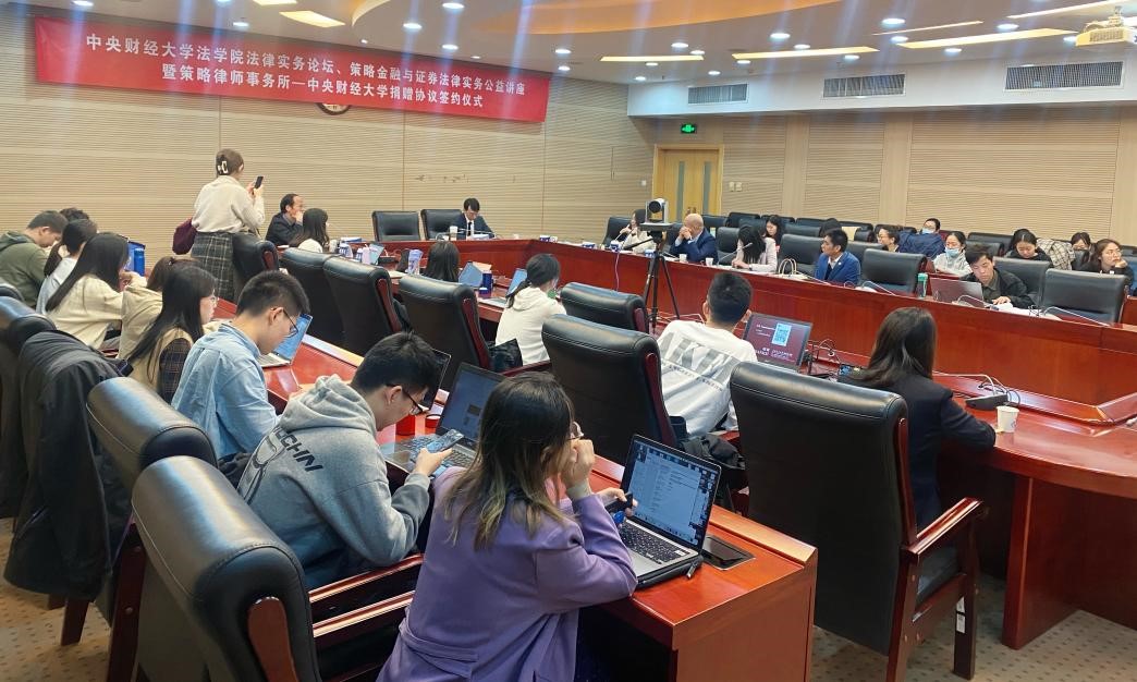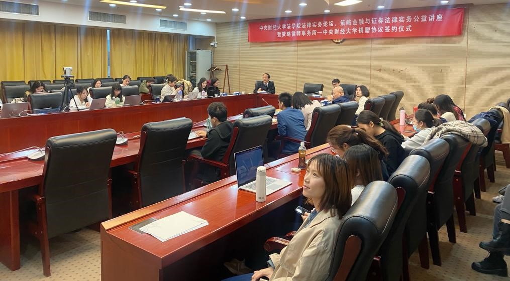 线下讲座由北京市金融服务法学研究会、中央财经大学金融服务法研究中心主办,策略律师事务所协办,来自学界、实务界的五十余名高校师生及法律人士参加中央财经大学学术会堂举行的线下讲座,线上直播观看人数达六百人。本场讲座由中央财经大学法学院邢会强教授主持。