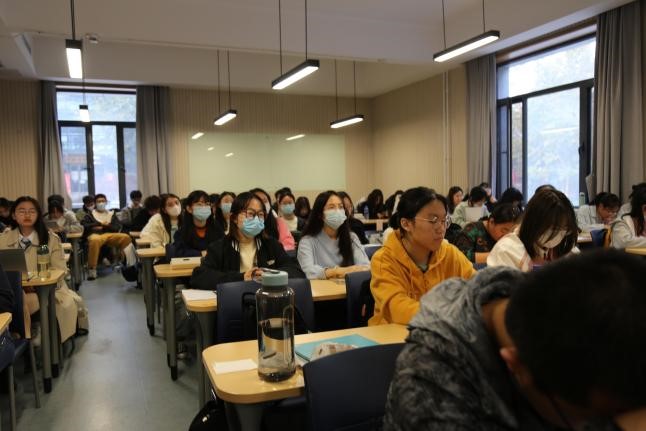 2021年11月3日16点,我院在学院南路校区主教学楼108教室举办2021级新生引航工程系列讲座第九讲“高效听说——人际沟通的快捷键”。本次讲座由我校教育管理研究员南荣素老师主讲,法学院党委副书记徐颖研究员、2021级本科生辅导员李孝文老师出席,2021级本科生王梓璇主持,全体2021级本科生参加。