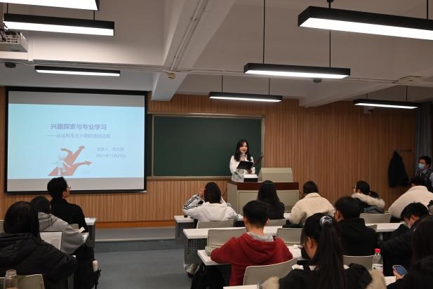 讲座的最后,吴老师对辅修双学位,转专业、考研保研的安排进行大致介绍,结合往届学生实例与学校相关规章制度说明及时收集相关信息,做好目标规划,成为复合型人才的重要性。通过以上方法追寻自己喜欢的专业,以兴趣为导向进行大学的学习生活;同时也要不忘接纳自己,即使无法与热爱相伴,也要接受现实,努力进步成长。