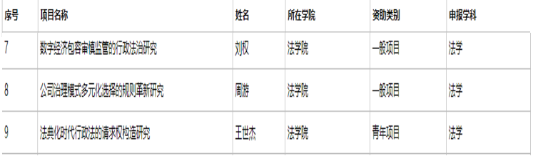 近日,2022年国家社科基金年度项目和青年项目评审工作全部结束,经专家严格评审和面向社会公示,我校共计17项课题获得资助立项,其中我院立项课题为3项:刘权副教授和周游副教授申报的研究课题获一般项目立项,王世杰讲师申请的研究课题获青年项目立项。另外,尹飞教授申报的研究课题在2022年上半年获“阐释党的十九届六中全会精神”国家社会科学基金重点项目立项。至此,法学院获2022年度国家社科基金4项课题立项。