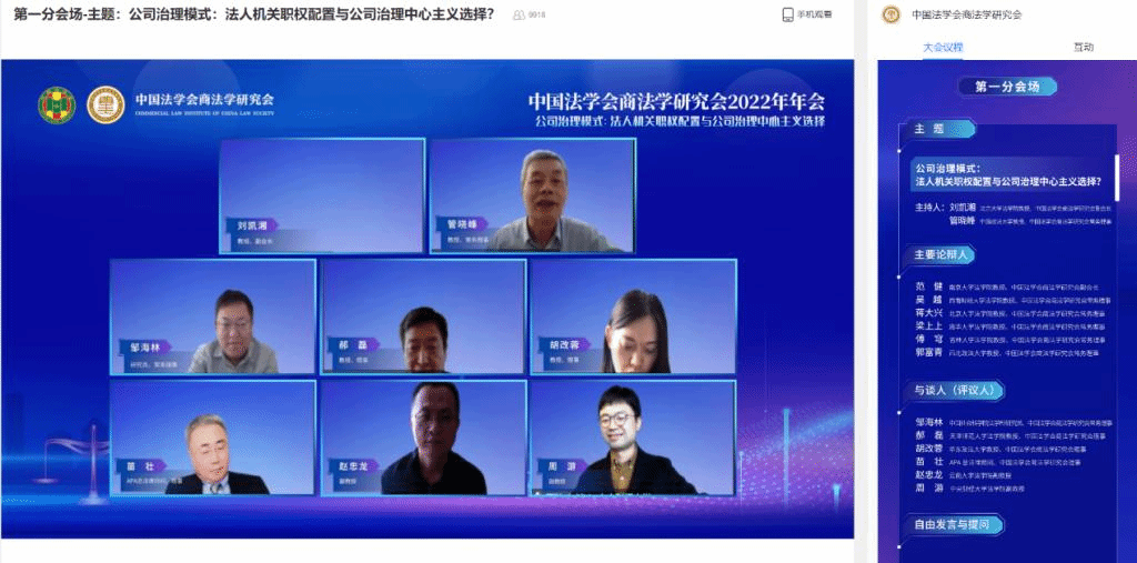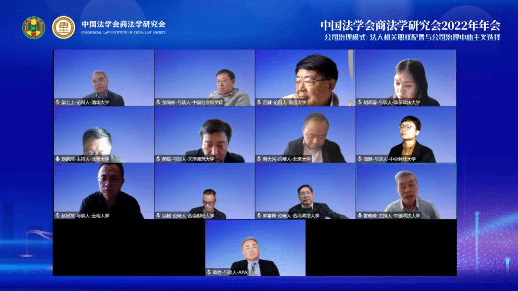 2022年11月26日,中国法学会商法学研究会2022年年会通过线上直播方式顺利召开。本次年会由中国法学会商法学研究会主办,主题为“后疫情时代的经济发展与商法回应”,我院周游副教授受邀参会并参与与谈。周游副教授与我院2021级民商法学硕士研究生符大卿向年会提交的论文《改变监督机关就能改善监督效能吗?——选择型公司法视角下公司监督机关设置模式省思》与王湘淳博士提交的《论利益冲突交易的统一综合调整——以对<公司法>区分调整的反思为起点》,入选《中国法学会商法学研究会2022年年会论文集》。