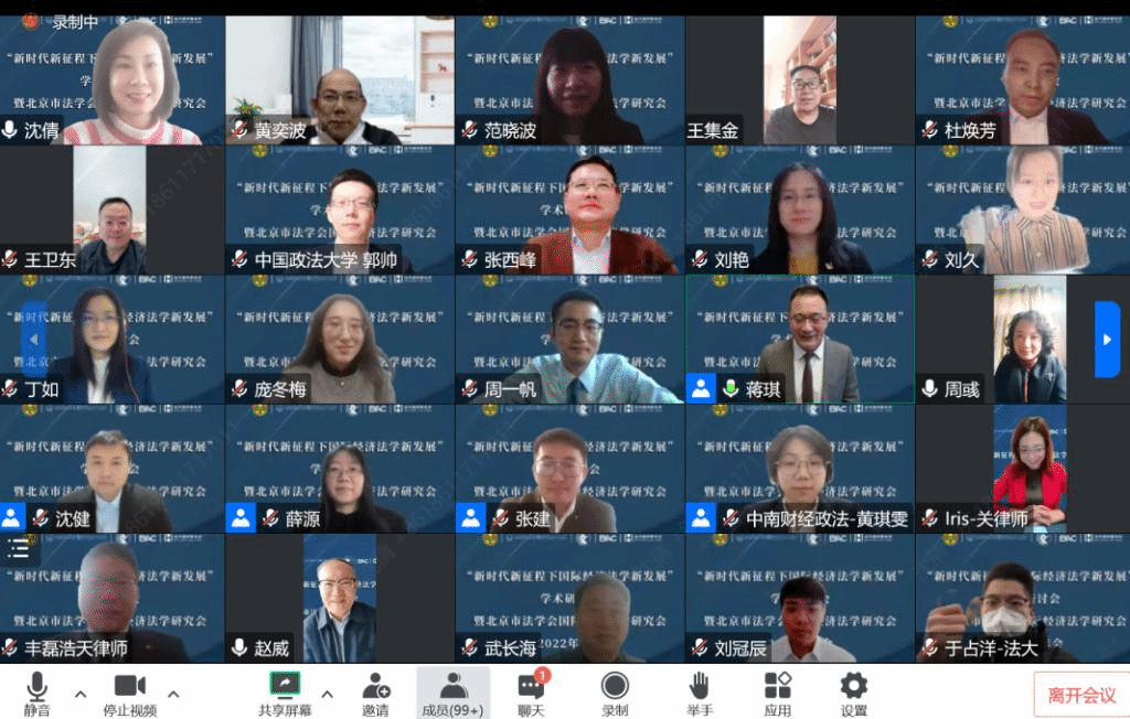 12月3日,北京市法学会国际经济法学研究会2022年年会成功召开。本次会议以“新时代新征程下国际经济法学新发展”为主题,由北京市法学会国际经济法学研究会主办,中央财经大学法学院承办,中国政法大学全球化法律问题研究中心、北京仲裁委员会、中国政法大学国际仲裁与调解研究中心、北京浩天律师事务所协办,来自全国各地的130余位专家学者、实务工作者线上参加了本次会议。