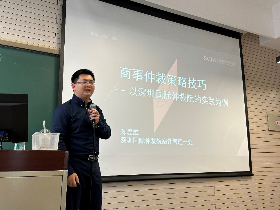 2023年3月31日下午,深圳国际仲裁院案件管理一处法律顾问陈思维先生受邀为同学们带来主题为“商事仲裁策略技巧——以深圳国际仲裁院的实践”为例的讲座,本次活动由我院周游副教授主持。这是商法学研究工作坊系列活动之一,我院部分本科生及研究生参加了本次活动。