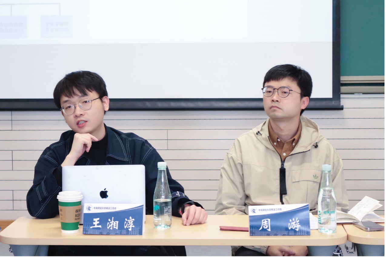 2023年4月12日下午,中央财经大学商法学研究工作坊2023年第4期(总第33期)在中央财经大学学院南路校区主教306教室举行。本次活动的议题是公司经理的法律定位。我院王湘淳老师作为本期工作坊的特邀嘉宾参与了本次活动,周游副教授全程指导活动开展,我院研究生罗卿华主持了本次活动。本期研究团队为我院本科生陈凯茵、刘秋杉、王梓璇、杨玲、赵子翔以及研究生林睿尧、叶芷筠。同时,活动邀请了我院本科生时海腾、于学昊两位往届成员返场参与讨论。工作坊主要由主持人进行开场介绍与引导,指导老师、嘉宾老师与研究团队对话交流,参会者提问,嘉宾老师和往届返场成员发言,研究团队、指导老师与嘉宾老师回应与自由讨论,指导老师总结及答疑赠书等环节构成。本次商法工作坊共计有60余位校内外师生参与讨论。
