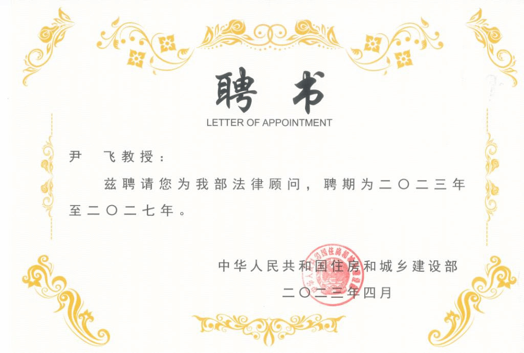 4月27日,住房和城乡建设部举行法律顾问座谈会暨聘任仪式,聘请马怀德、王轶、莫于川、尹飞、何海波5位法学专家担任住房和城乡建设部新一届法律顾问。