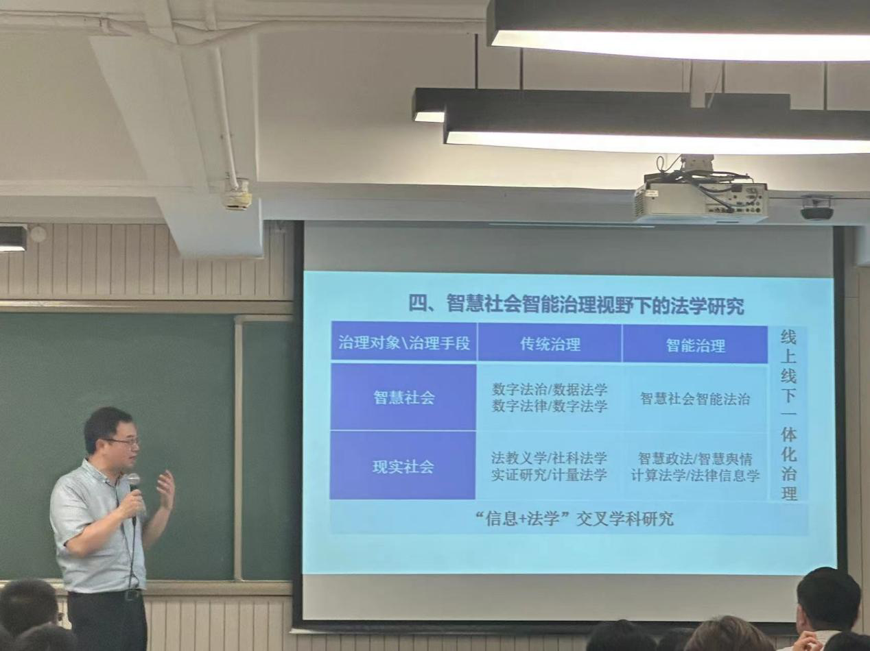 2023年5月15日晚,四川大学法学院二级教授、博士生导师,国家级青年人才,四川智慧社会智能治理重点实验室主任王竹教授,应邀为我院师生作主题为“智慧社会智能治理视野下的智能法院建设”讲座。中央财经大学朱晓峰教授担任主持人,王叶刚、武腾、曹建军、徐建刚老师以及百余名研究生、本科生参加讲座。本次讲座受中央财经大学研究生院“研究生课堂嘉宾讲学支持计划”支持。