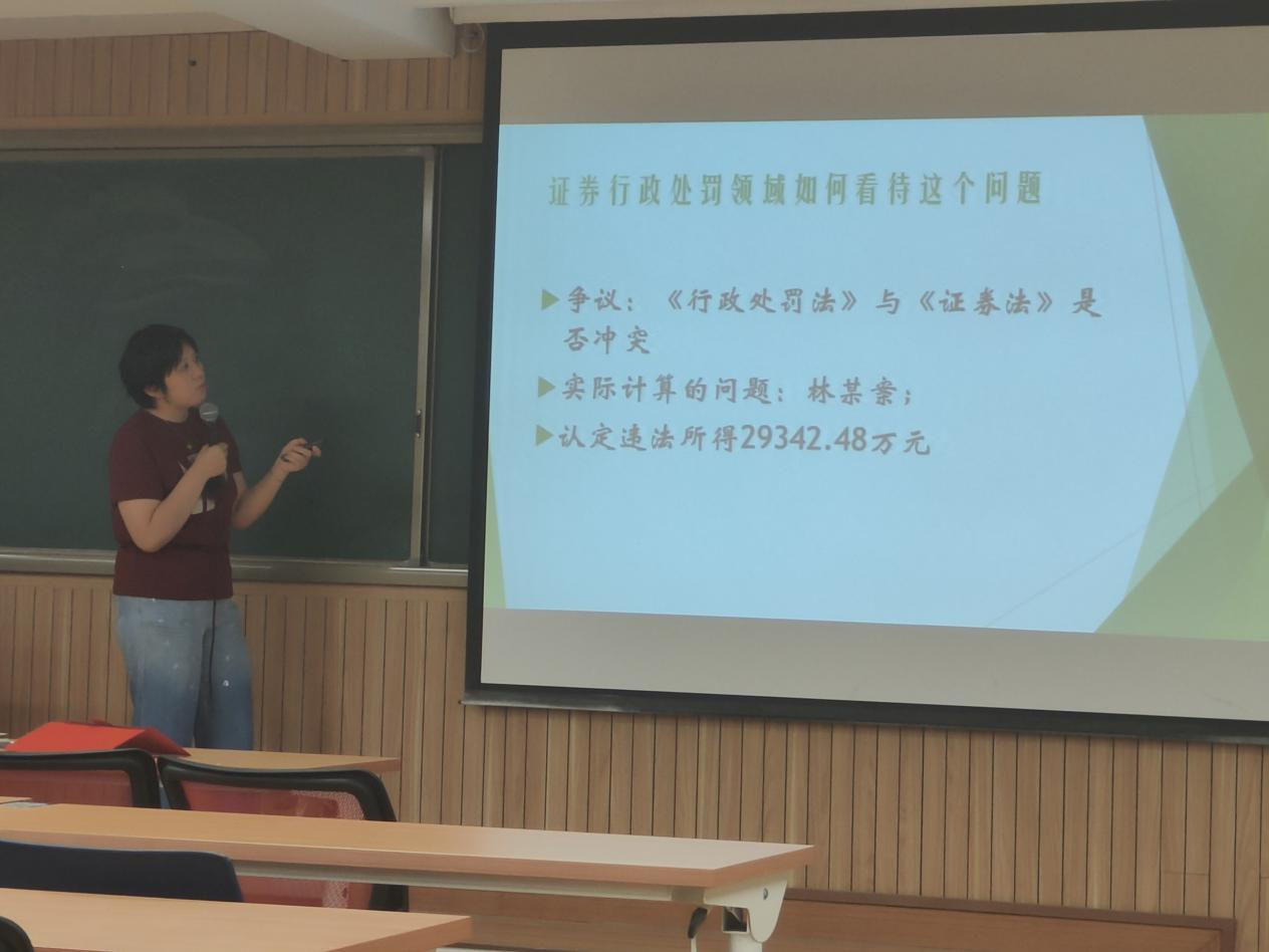 2023年5月15日晚,法学院研究生课程《行政法学》邀请到北京金融法院审三庭四级高级法官杨晓琼女士为同学们授课,主题为“证券行政处罚案件中违法所得认定的相关法律问题”。本次授课获中央财经大学研究生院课程嘉宾讲学支持计划资助,由法学院副院长刘权教授主持,法学院2022级学硕与法律(法学)研究生参加。
