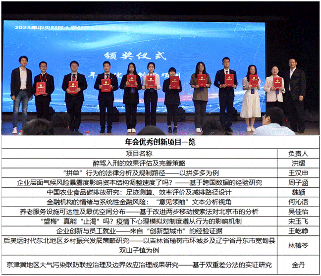 面对来自不同学院的优秀项目,我院创新团队们认真准备答辩内容、沉着应对评委问题,发挥法学学科的特色优势。最终,我院创新项目“醉驾入刑的效果评估及完善策略”及“‘拼单’行为的法律分析及规制路径——以拼多多为例”获得2023中央财经大学创新创业教育年会“优秀创新项目”,并获国家级项目。“股东会与董事会职权配置司法裁判的实证研究”获得国家级项目。