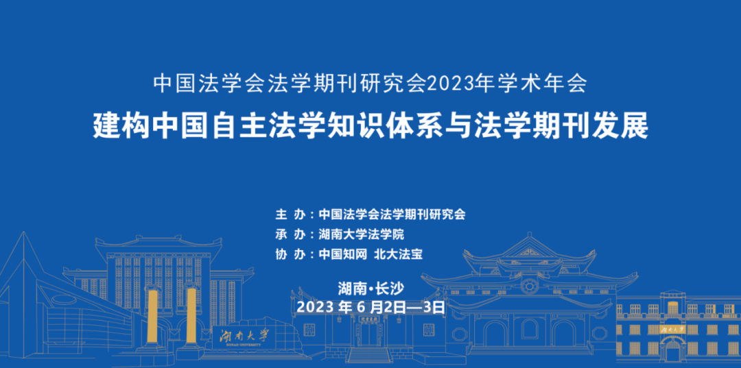 2023年6月3日,《财经法学》主编邢会强教授、副主编刘权教授应邀参加中国法学会法学期刊研究会2023年年会。本次大会的主题是“建构中国自主法学知识体系与法学期刊发展”,会议由中国法学会法学期刊研究会主办,湖南大学法学院承办,中国知网、北大法宝协办。全国人大常委会委员、环境与资源保护委员会副主任委员、中国法学会副会长吕忠梅教授出席会议并致辞。湖南大学党委副书记唐珍名,中国法学会法学期刊研究会会员、理事、编辑和学者代表等210余人参加会议。
