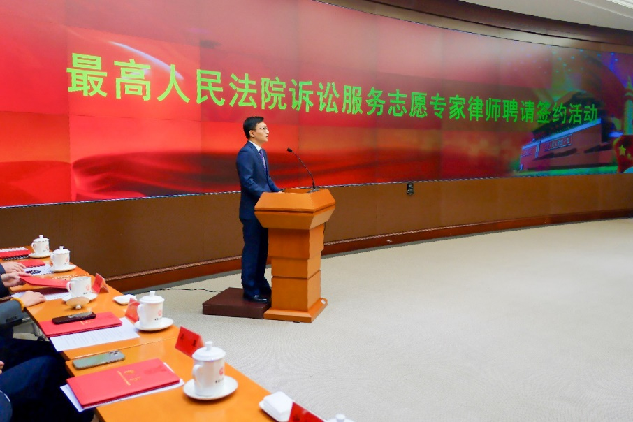 最高人民法院立案庭庭长、诉讼服务中心主任钱晓晨通报诉讼服务志愿专家工作情况,充分肯定中国法律咨询中心承接最高人民法院诉讼服务志愿专家工作以来取得的成绩,并宣读了《关于聘请诉讼服务志愿专家、志愿律师的决定》。