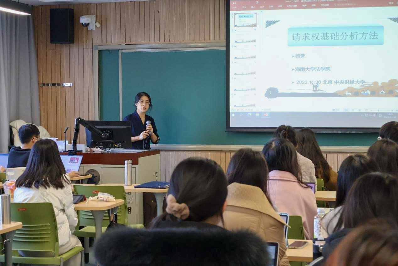 2023年11月30日,受我校研究生院研究生课堂嘉宾讲学计划的支持,杨芳教授应邀为我校研究生带来主题为“请求权基础分析方法的具体运用”专题授课。