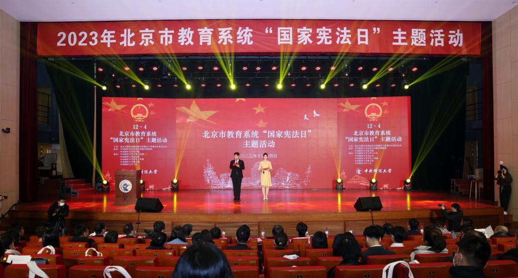 12月4日,北京市教育系统“国家宪法日”主题活动于我校学院南路校区学术会堂206报告厅举行。此次活动由北京市教育系统法制宣传教育工作领导小组办公室主办,中央财经大学法治宣传教育推进组和中央财经大学法学院承办。北京教育融媒体中心党委副书记、主任张淑芳,北京市教育委员会政策研究与法制工作处处长王艳霞,北京教育融媒体中心教育服务事业部主任、北京青少年法治教育中心副主任黄佳熹,中央财经大学副校长栗峥,中央财经大学宣传部部长、新闻中心主任雷洪峰,法学院党委书记林剑锋以及学校办公室、宣传部、保卫部、团委的相关负责人出席本次活动。