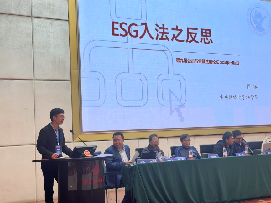 2023年12月2日,第九届公司与金融法制论坛学术研讨会在西南政法大学举办。本届论坛由中国法学会商法学研究会、西南政法大学共同主办,西南政法大学民商法学院、重庆市人文社会科学重点研究基地“市场交易法律制度研究基地”及《现代法学》编辑部联合承办。来自清华大学、北京大学、中国政法大学、中央财经大学等国内三十余所高校、十余家核心期刊和司法实务部门的近百位嘉宾齐聚论坛。我院周游副教授应邀出席本次会议。