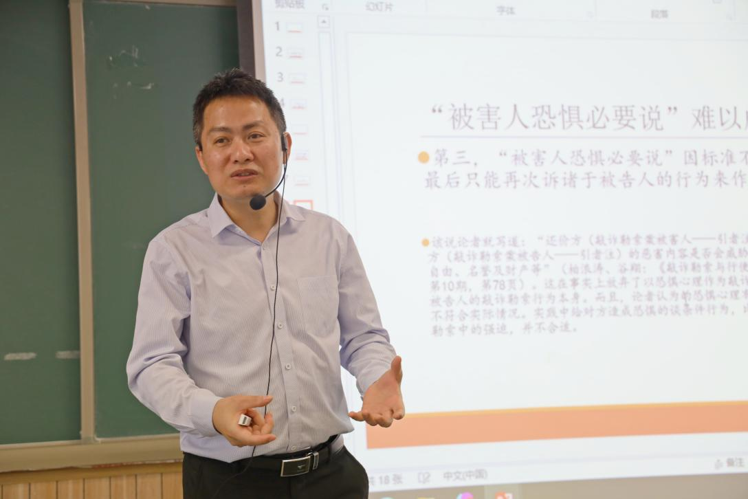 5月29日下午,在我校研究生课堂嘉宾讲学计划的支持下,中国人民大学法学院副教授、中国人民大学刑事法律科学研究中心研究人员蔡桂生应邀为我校法学院研究生作“敲诈勒索罪中‘被害人恐惧必要说’的相关问题”主题讲座,讲座由简爱副教授主持。