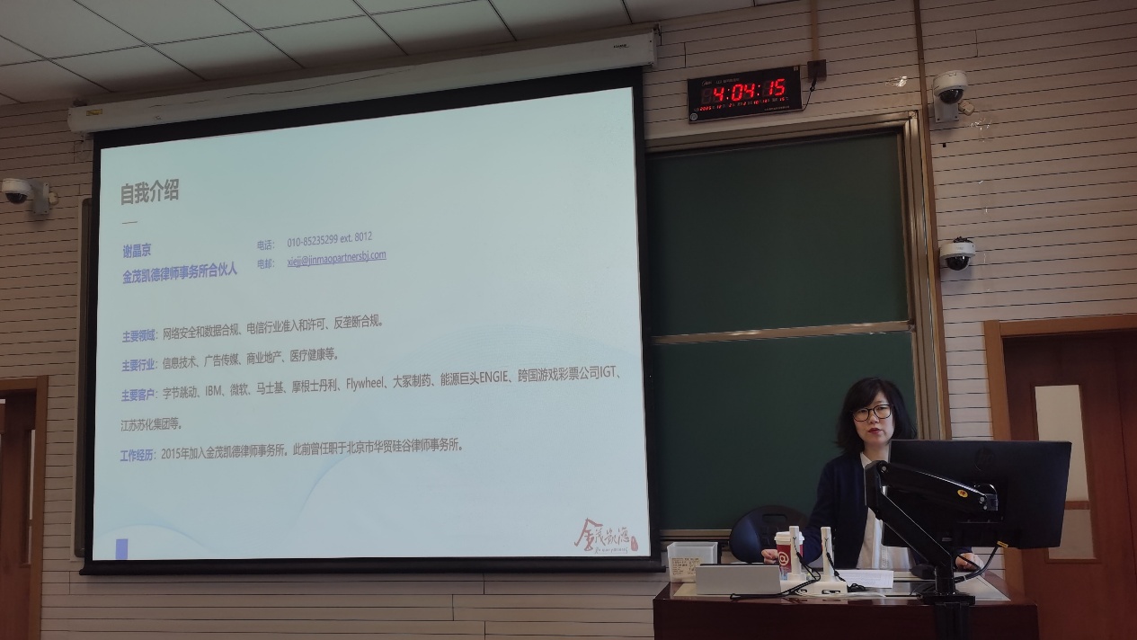 2025年12月2日下午,金茂凯德律师事务所北京办公室合伙人谢晶京律师来到我校法学院,以《AIGC产品应用合规分析框架》为题,作专题讲座。法学院国际法教研室主任沈健副教授、2024级硕士研究生及部分研究生参与了本次讲座。