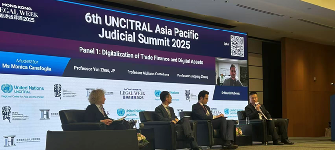 12月1日,在联合国国际贸易法委员会亚洲及太平洋区域中心和律政司香港国际人才培训学院联合举办的“第六届联合国国际贸易法委员会亚太司法高峰会”上,张小平副教授发表题为“Legislative Progress of Digital Assets and Digitalization of Trade Finance in China: Paths and Prospects”(中国数字资产和贸易融资数字化的立法进展:路径与展望)的演讲。在演讲中,张小平副教授指出,中国《民法典》和《国家安全法》中的相关规定,以及对虚拟货币的禁止性政策,共同构成数字立法的基本框架,但没有对数据的法律属性做出界定。2022年《数据二十条》中提出数据权利分置的构想,同时保护数据来源者合法权利,并在一系列地方立法中获得体现。数据立法的核心框架,应该是“信息-数据”的二分法,这一二分法说明了数据立法的必要性和数据立法的调整范围。基于此,数据法分为两大体系:一是内部体系,围绕数据的控制、处理、收益、处分 “四核心权能” 构建;二是外部体系,协调数据法与隐私(个人对自身信息的权利)、知识产权(企业对创新信息的权利)等信息相关权利的关系。在这一二分法体系下,数据权利是一种受限的权利,数据权利不得侵犯基于信息的权利是立法的核心原则。