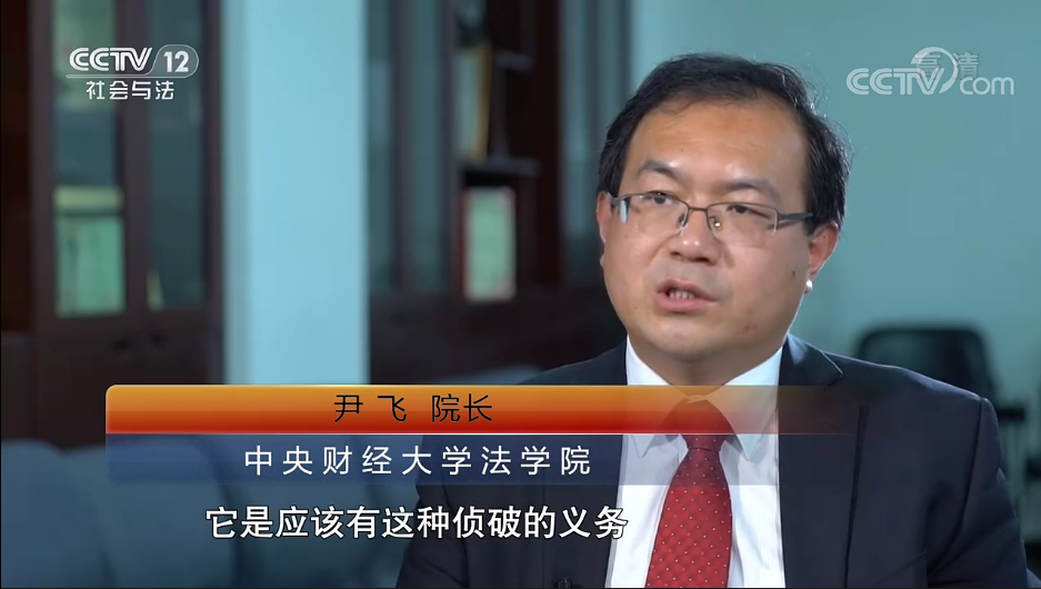 2020年5月28日下午,十三届全国人大三次会议表决通过《中华人民共和国民法典》。当晚,中央电视台社会与法频道(CCTV-12)播出《中国民法典诞生》一线特别节目。中央财经大学法学院院长尹飞与三位全国人大代表、全国人大常委会法工委民法室相关负责人以及中国人民大学常务副校长王利明、清华大学法学院院长申卫星等接受采访。尹飞教授在访谈中就高空抛物、坠物,疫情防控等紧急状态之下的国家订货、征用,民法典的制定意义等发表了自己的观点。