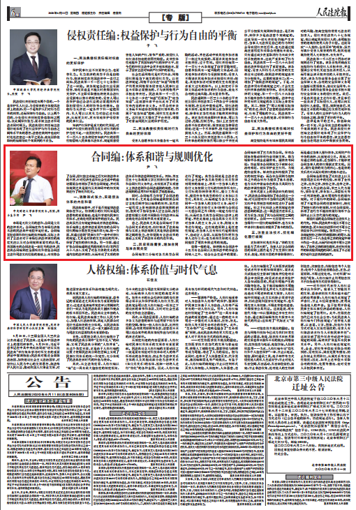 2020年5月28日,十三届全国人大三次会议表决通过《中华人民共和国民法典》,标志着我国从民事单行法时代迈入民法典时代。为使读者对民法典有一个系统、宏观的了解,《人民法院报》特邀中国人民大学常务副校长王利明教授、清华大学法学院副院长程啸教授、中国政法大学民商经济法学院院长于飞教授等参与民法典起草和立法论证及建议工作的民法学专家、学者,按照民法典的结构,对每一编的立法思想和主要原则以及亮点进行梳理和解读,对民法典中的重大疑难问题进行解析。