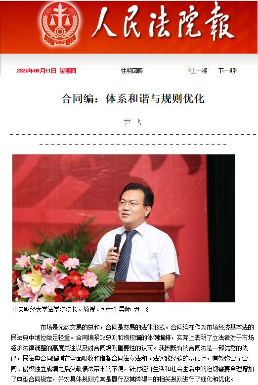 中央财经大学法学院院长尹飞教授主要就民法典合同编的重要问题予以阐释。