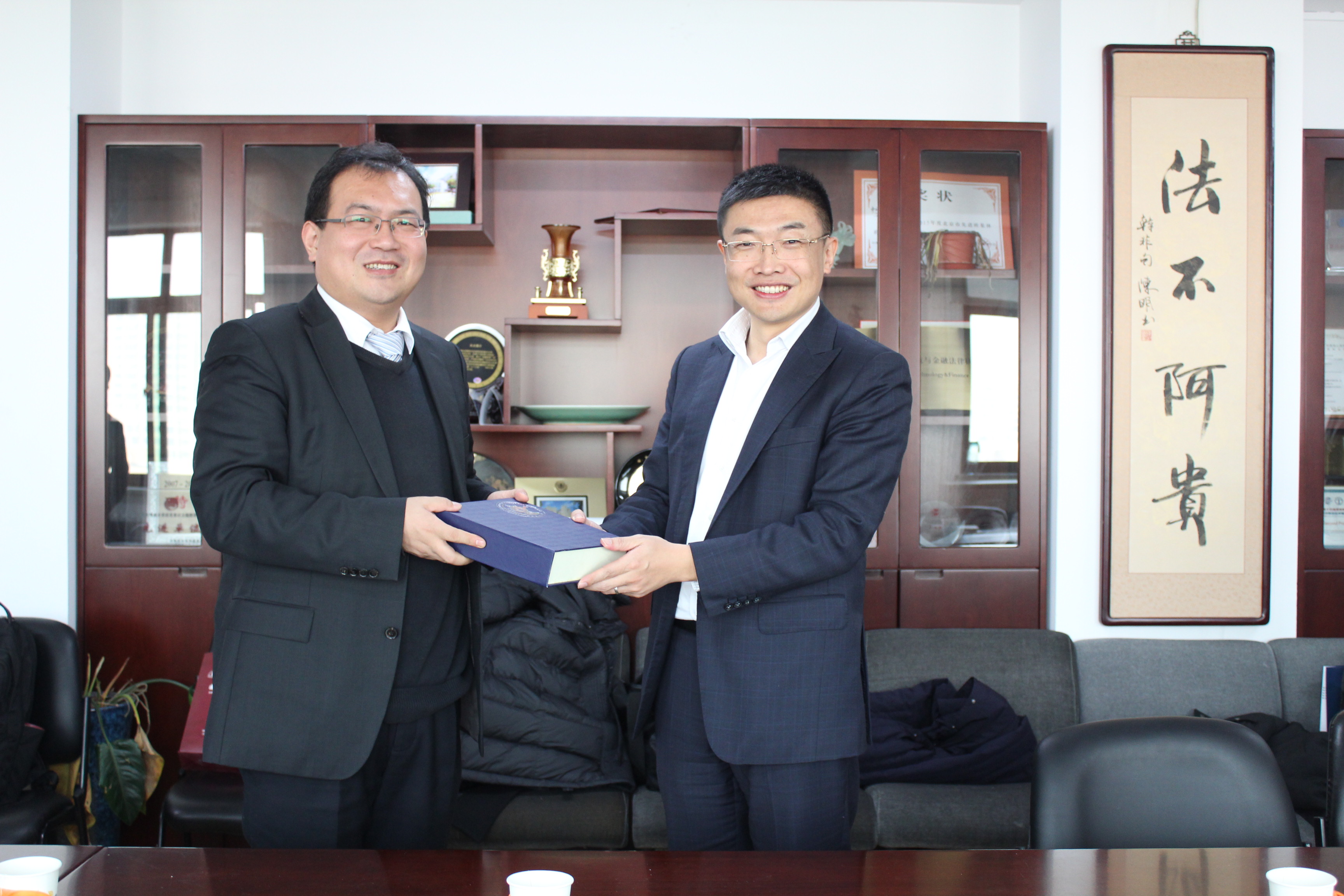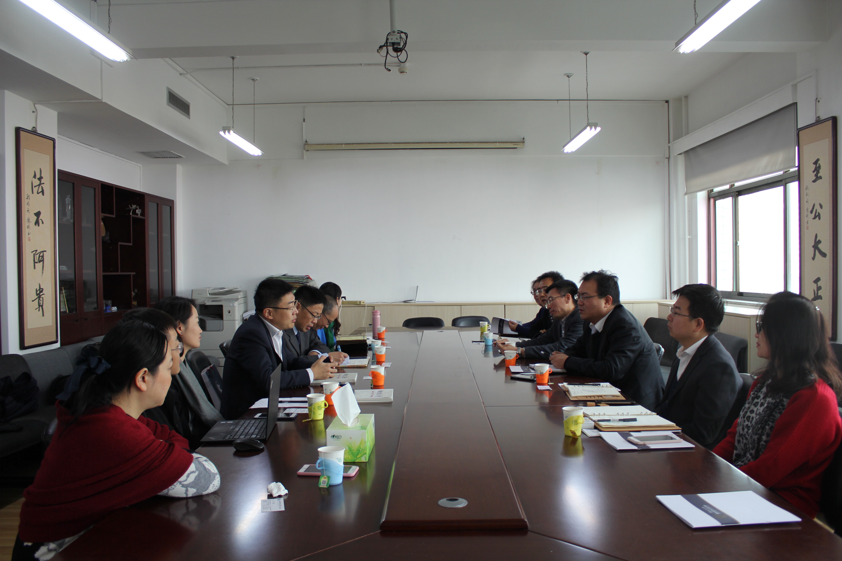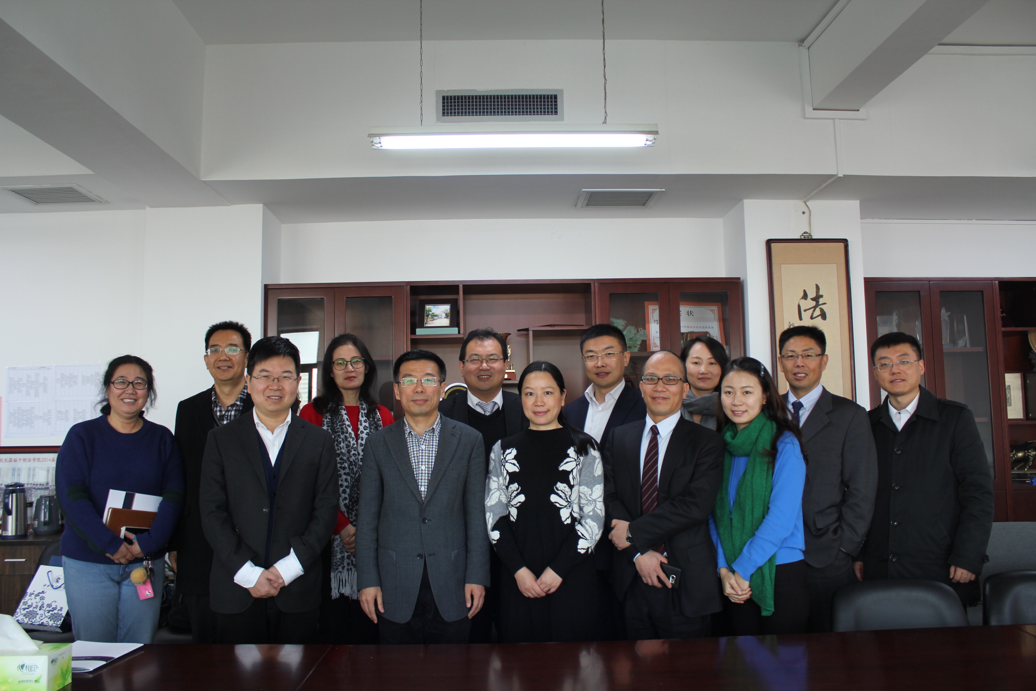 2017年12月29日上午,华东政法大学国际金融法律学院院长韩强、党总支副书记朱小萍、副院长丁勇、党总支副书记郑晓雷、刘凤元教授、冷静教授以及科研秘书杨雯来我院调研,我院院长尹飞、党委书记吴韬、副院长王克玉、李伟、党委副书记徐颖、邢会强教授、工会主席曹晓燕副教授出席会议。