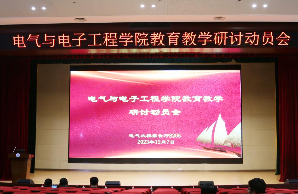 为落实立德树人根本任务,践行教书育人使命,迎接新一轮教育部教育教学审核评估工作,电气与电子工程学院于12月7日下午在电气大楼B205报告厅召开了教育教学研讨动员会。校本科生院副院长柯昌剑、研究生院副院长陈瑞学应邀出席并做辅导报告。学院全体在岗教职工参加了会议。